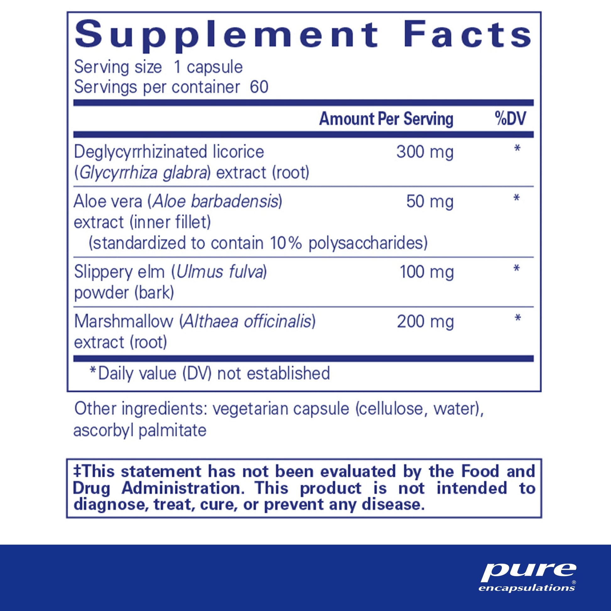 DGL Plus supplement offers a combination of deglycyrrhizinated licorice (DGL) and herbal extracts to provide nutritional support to the gastrointestinal tract. DGL Plus supports the body’s natural defense mechanisms by stimulating the mass, quality and production of mucous, a major component of the stomach’s protective lining. DGL is free of side effects typically associated with licorice.‡