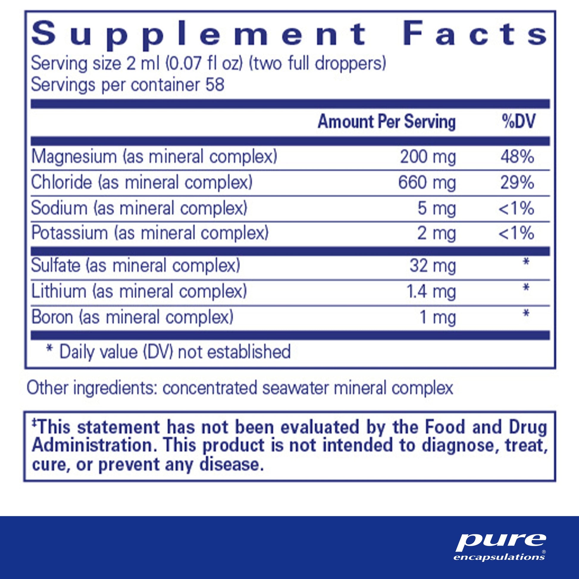 Concentrated seawater complex containing minerals in varying trace amounts, as found in seawater from the Great Salt Lake in Utah Supports optimal mineral intake‡