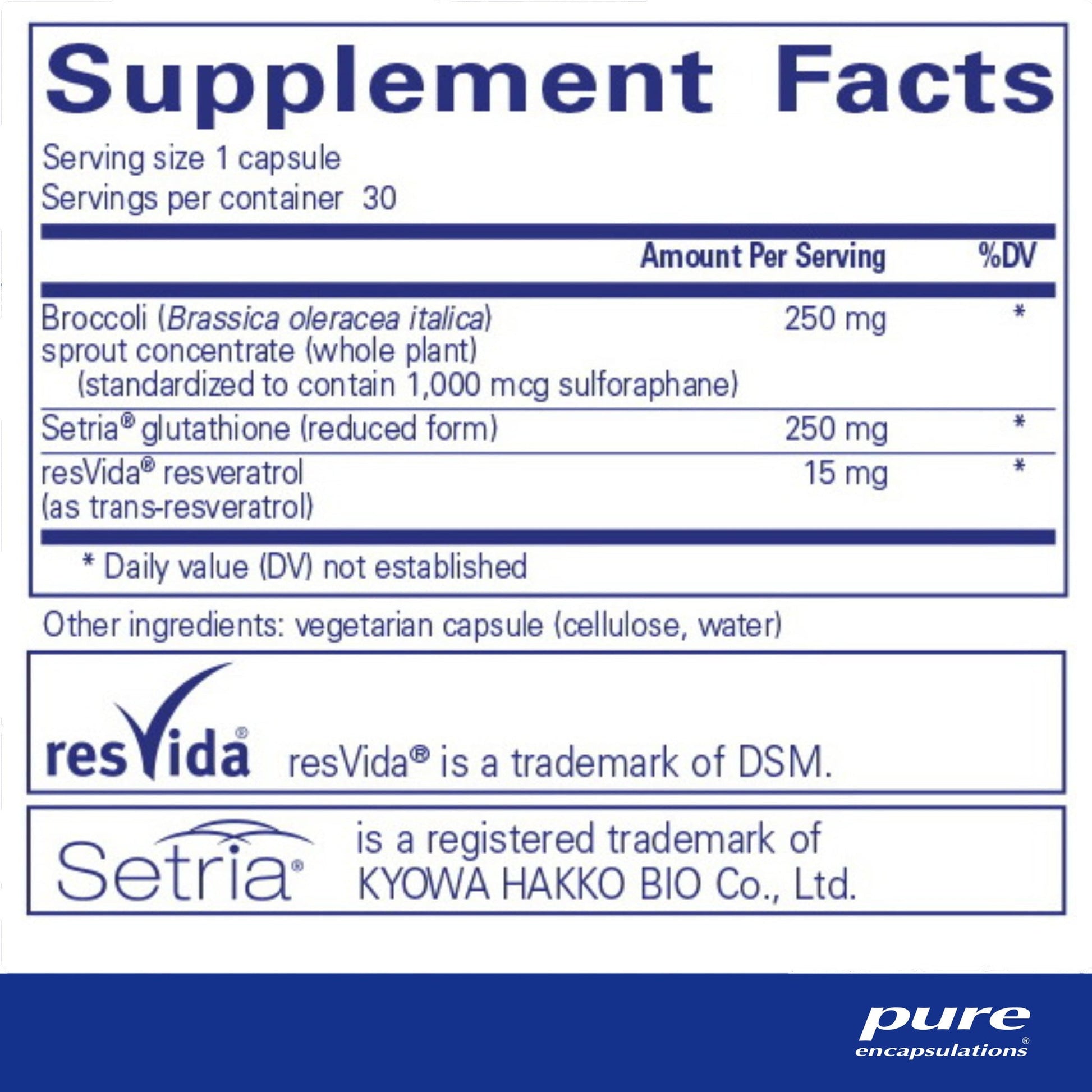 Our Nrf2 Detox formula includes 1,000 mcg of sulforaphane from broccoli sprout concentrate. The formula is designed to support liver detoxification and overall antioxidant presence throughout the body, as well as supporting toxin elimination in the liver. Glutathione, an antioxidant, is also included in this formula. In a randomized clinical trial, supplementation with 250 and 1,000 mg of Setria® glutathione per day increased glutathione levels in the blood after one, three and six months.‡