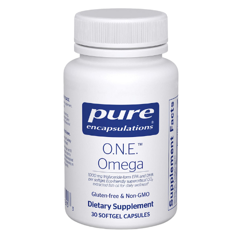 This omega-3 supplement promotes cardiovascular, joint, skin and cognitive health. Each softgel of O.N.E.™ Omega contains fish oil produced through a unique solvent-free, supercritical CO2-based extraction method. This method utilizes a low-temperature, oxygen-free process to prevent oxidation reactions, resulting in a pure, concentrated fish oil.‡