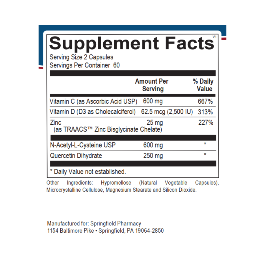 SP Immune Support is a targeted blend of nutrients designed to provide a broad-spectrum support to the body’s immune reserves. The formula includes quercetin, a powerful bioflavonoid that aids in supporting the immune system. Vitamin C and N-acetyl cysteine are potent antioxidants that promote respiratory function and support the function of quercetin. Vitamin D and zinc are important micronutrients needed to create a robust immune reserve. This powerful combination works to promote healthy respiratory and immune function.