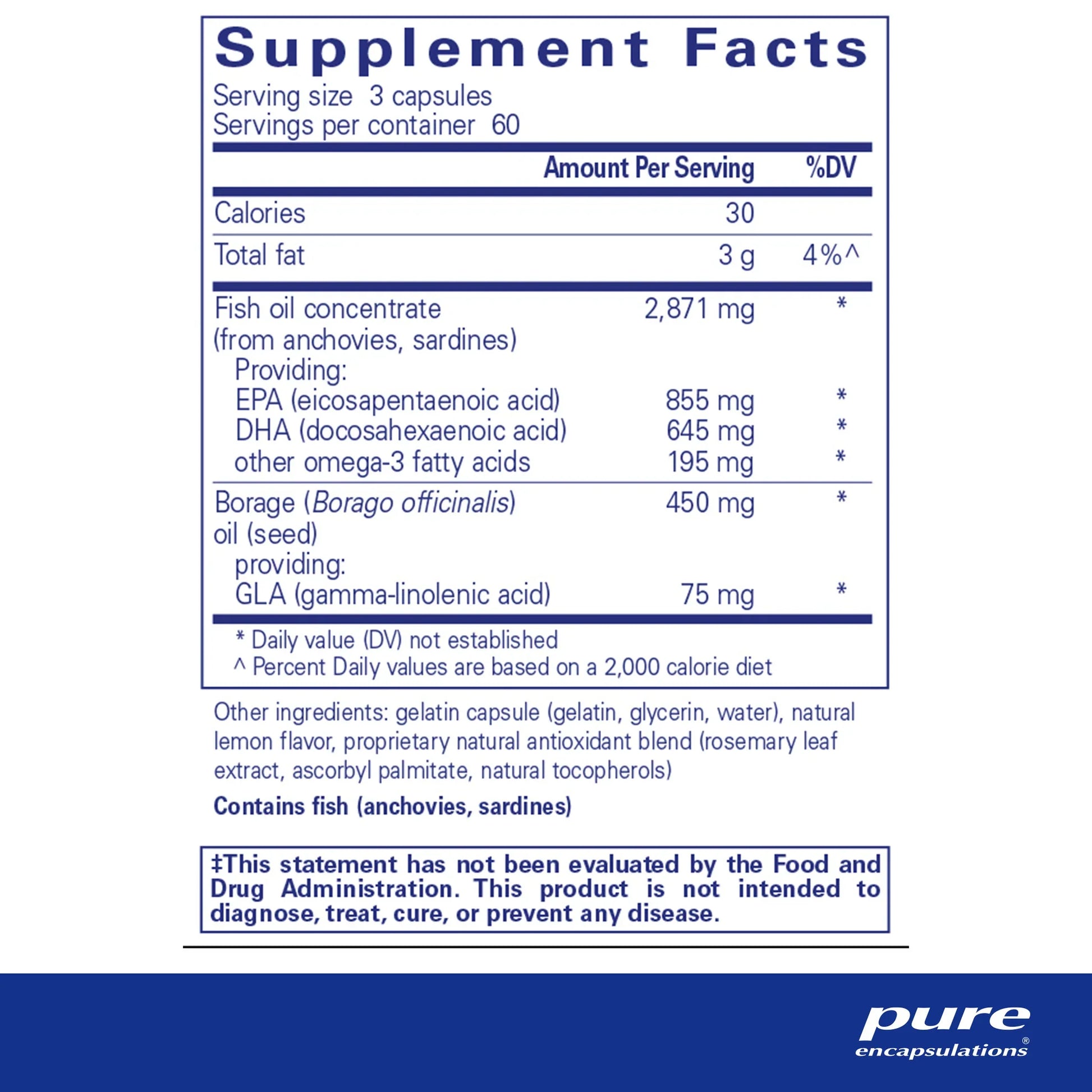 The omega-3 fatty acids from EPA and DHA in fish oil support the coating of fluid that covers the eyes to maintain its fluidity and viscosity. EPA and DHA promote the eye’s retention of water. EPA and DHA also help protect the secretory function of the lacrimal glands. In addition, VisionPro EPA/DHA/GLA provides 75 mg GLA per serving from cold-pressed borage oil.‡